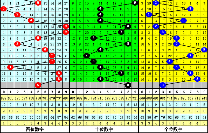 其中,号码奇偶比为34:23,奇数走势活跃;号码大小比为32:25,小 号走势相对较冷;号码012路比为20:19:18,基本持平。