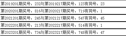 与前期历史同期奖号对比分析,在最近五年开奖中,第201期同期奖号与第217期同期奖号都出现了相同号码: