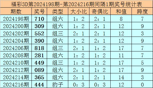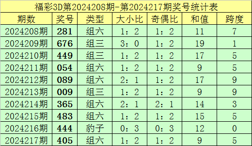 其中大小比1:2,奇偶比1:2,和值9,跨度5。
