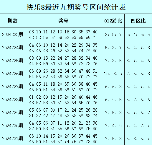 快乐8第2024232期区间分析
