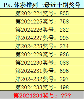 开奖回顾:体彩排列三第2024233期奖号为:498,类型:组六。