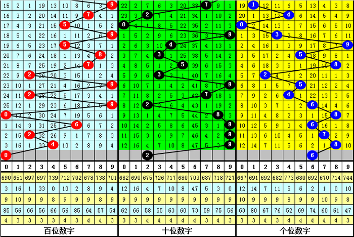 中号球:上期奖号为9,开出大号、奇号,该位前10次开出大号、奇号的现象时其奖号分别为:973、877、291、971、993、758、995、274、696、297,其中中号球012路比为5:4:1。