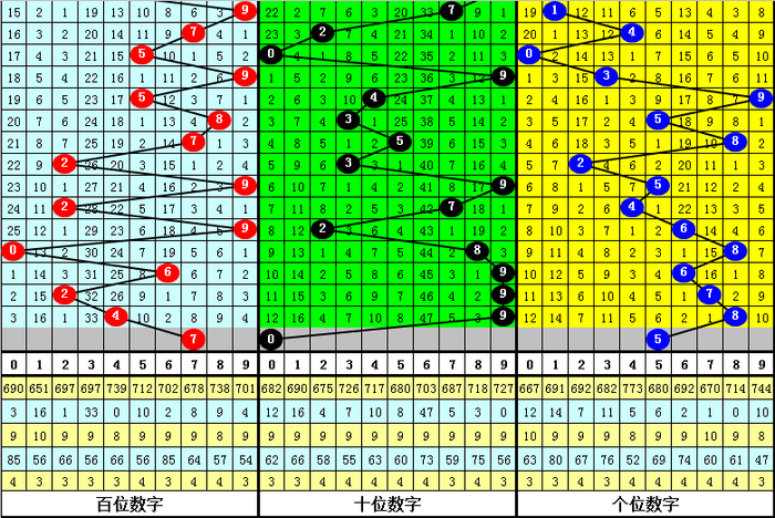 中位跨度分析:最近3期中位分别开出奖号9-9-9,最近两期跨度分别开出0、0,中位号码历史上连续两期跨度开出0、0的奖号共开出69次,其前两次奖号开出: