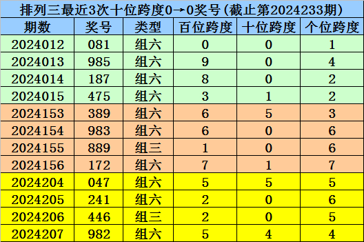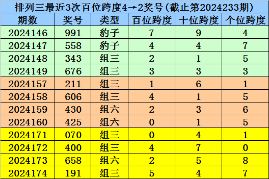 第2024157-第2024159期奖号:211、606、430,其下期奖号为:425,首位号码跨度为0;