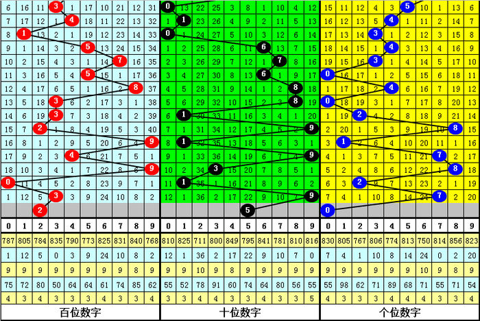 跨度分析:在第234期同期历史奖号中,号码跨度012路比为7:11:4,奇偶比为11:11,大小比为10:12,跨度开出频次分别为:跨度4出现5次,跨度7出现4次,跨度1、2、3、6、9出现2次,跨度0、5、8出现1次,本期关注2路跨度出现,一码跨度参考5。