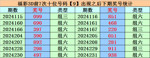 十位分析:十位上期奖号为9,历史上十位号码9已出现816次,最近100期该号码开出9次,上期号码遗漏值为2期。