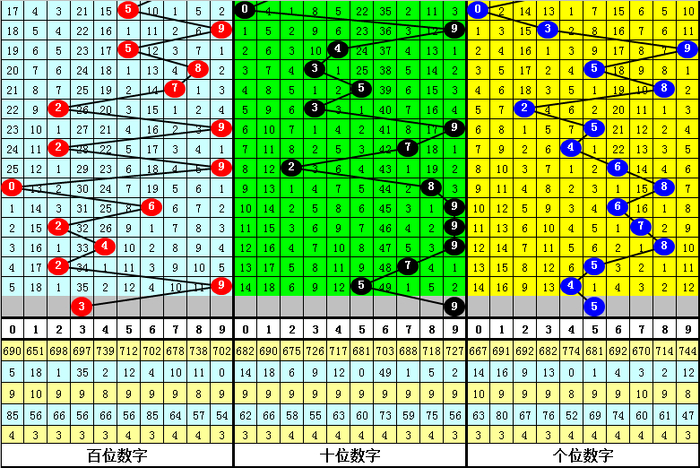百位:1、2路号较热,本期防0路号反弹,关注3。
