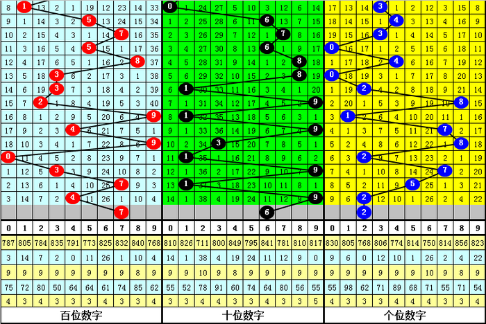 百位号码:第24231期-24235期奖号为:9-0-3-7-4,振幅为9点,分布较分散,本期预计百位走高,关注号码7。