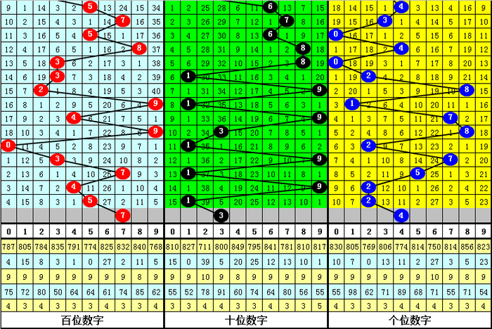 第二位上期开出奖号1,走小8点,本期注意该位走大,关注号码3。