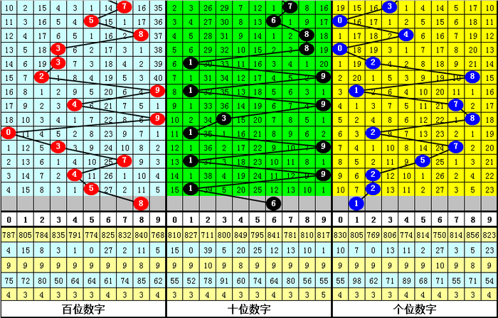 其中,组三出现7次,组六出现15次,单选0-9分别开出: