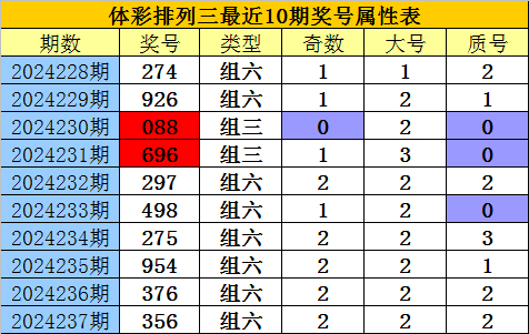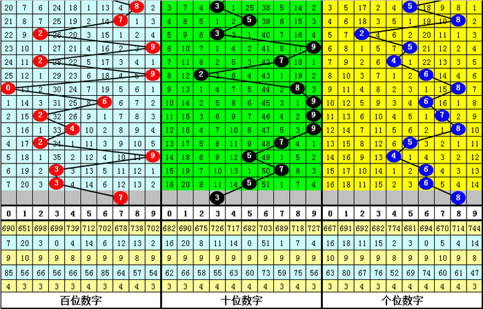 百位上期开出号码3,为奇数,奇数号近期开出相对较少,最近连续开出了3次,有明显的走热迹象,本期注意奇数号再次开出,参考号码7。