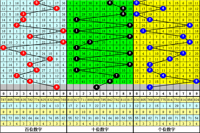 号码012路:上期开出两个0路号+一个1路号,0路号码全部轮空,1路号码全部轮空,最近100期奖号中,两个0路号+一个1路号出现8次,本期预计1路号码轮空,看好出现本期预计2路号码轮空,看好出现一个1路号+两个2路号。