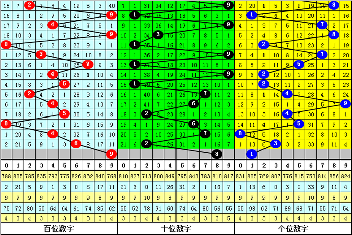 其中,号码0出现17次,1出现12次,2出现11次,3出现17次,4出现12次,5出现16次,6出现13次,7出现16次,8出现18次,9出现9次,奇偶比为70:71,奇偶号码基本持平,本期预计奇数热出,奇偶比参考2:1;大小比为:72:69,大号活跃,本期重防大号走热。
