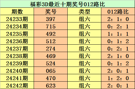 开奖回顾:第2024242期3D奖号为623。形态:组六,奇偶比1:2,大小比1:2,012路比为2:0:1。