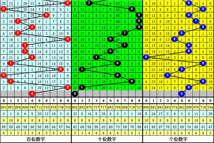 百位分析:上期出现号码9为:合数、大号,在连续9期开奖中,百位分别为:合数、大号:9;质数、小 号:3;质数、小 号:3;合数、小 号:4;质数、小 号:1;合数、大号:8;合数、小 号:0;质数、小 号:1;合数、大号:9,其中小 号频次较少,合数开出频繁,百位本期注意合数、小 号开出。