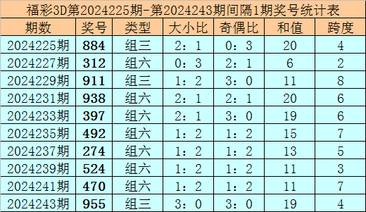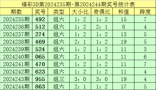 上期回顾:福彩3D第2024244期奖号:863。