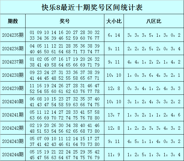 快乐8第2024245期区间分析