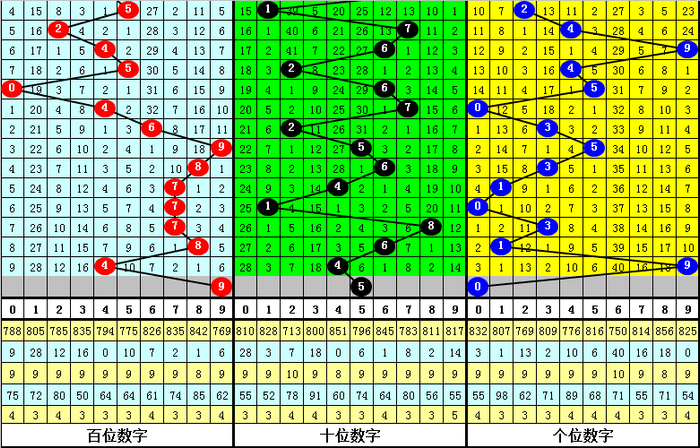 其中,组三出现5次,组六出现17次,单选0-9分别开出: