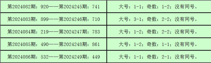 其中,大号出现了7个,基本持平;奇数号码出现了8个,基本持平,1路号码走热。