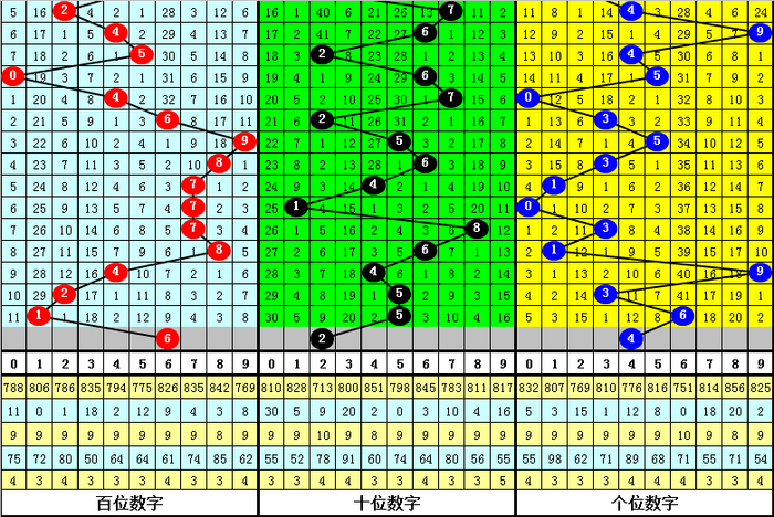 个位上期奖号为6,上升3点位,本期预计下降,参考4。