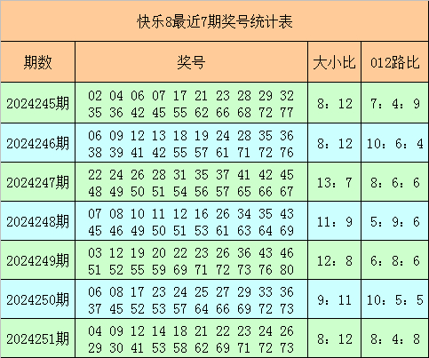 快乐8第2024251期奖号为:04 09 12 14 18 21 22 23 24 26 29 30 41 53 58 62 69 71 72 73,其中奖号012路比为8:4:8,大小比为8:12。