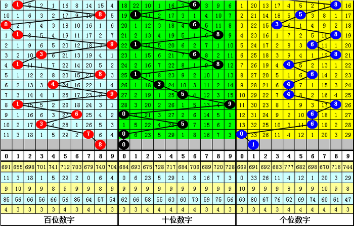 在以上奖号中,下期开奖百位号码统计:奇偶分布分别为:偶-奇-偶-奇-偶-偶-奇-奇-奇-奇,其中奇偶数基本持平,本期百位看好偶数出现;大小分布分别为:大-大-小-大-小-大-大-大-大-大,其中大号走势较热,本期百位看好大号再次开出。百位参考号码:8