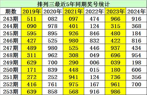 金心排列三第2024253期推荐: