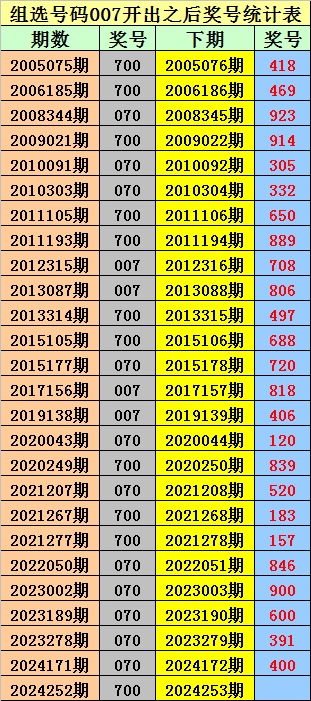 排列三组选007出现之后下期分别开出:418、469、923、914、305、332、650、889、708、806、497、688、720、818、406、120、839、520、183、157、846、900、600、391、400。