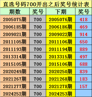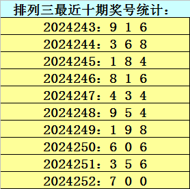上期回顾:排列三第2024252期开奖号码为700,历史上组选出现26次,直选出现11次。