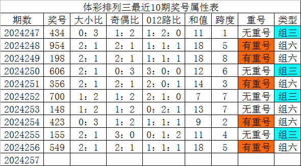 体彩排列三第2024257期发哥观点: