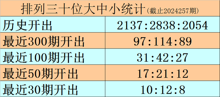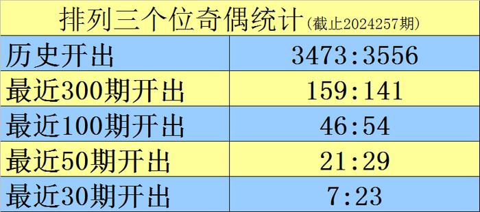 上期回顾:排列三2024257期奖号为008,类型为组三,奇偶比为0:3,大小比为1:2,和值为8。