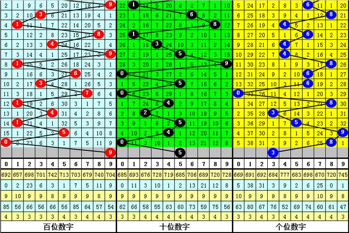 本期第一位预计开出0路号码,参考号码9。