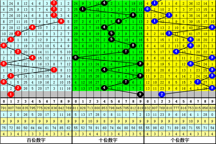 第三位冷码判断:上期开出奖号9,遗漏值为1期,目前该位最冷号码为8,遗漏值为28期,本期继续排除。