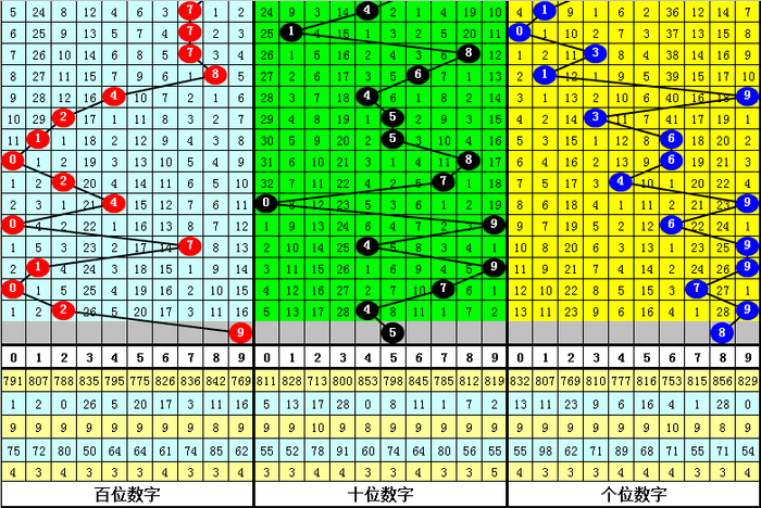 百位推荐:近10期出现3个0路号、4个1路号、3个2路号,1路号火爆。本期注意0路号,关注号码6、9。
