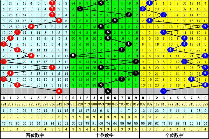 组选分析:在0-9的组选分布图中,最近10期0-2区段开出9个号码,3-6区段开出10个号码,7-9区段开出11个号码,上期各区段分别开出1个奖号,本期看好中后部号码热出,防0-2区段走冷轮空。