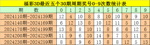 在最近一个30期周期内(第2024230期-第2024259期),豹子奖号没有出现,组三奖号开出了4次,所占比例为16%,组六奖号共出现26期,开出比例为104%,上期出现组六号码之后,本期看好组六号码继续开出。