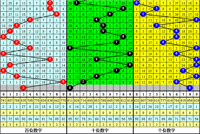 个位分析:最近7期个位分别开出奖号:9、6、9、9、7、9、6,个位振幅为3个点位,本期注意个位号码走大,关注一码8。