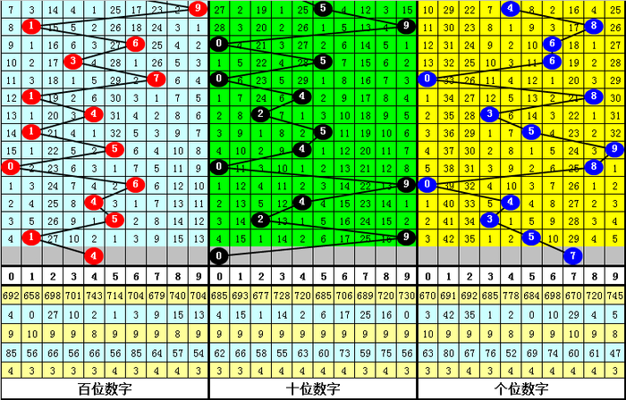 百位号码奇偶比为4:3,偶数走冷,本期看好偶数号码出现;大小比为4:3,小 号表现较冷,本期看好开出小 号。
