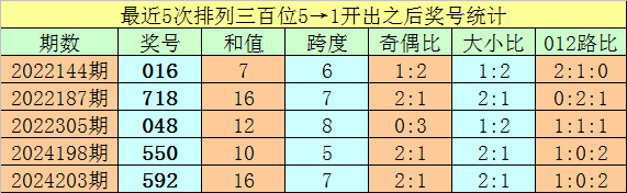 1、排列三最近两期百位号码分别开出5和1,历史上百位号码连续两期分别开出5和1的奖号出现了62期。前五期开出之后其下期奖号分别为:016、718、048、550、592;