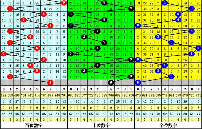 个位:其下期奖号1路和2路在该位大热,0路近7次全部轮空,本期该位注意0路解冻,关注号码0。