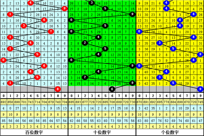 中号球:上期奖号为9,开出大号、奇号,该位前10次开出大号、奇号的现象时其奖号分别为:498、275、954、376、356、954、198、356、155、690,其中中号球012路比为3:2:5。