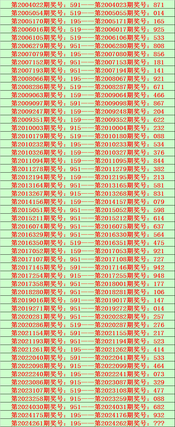 开奖回顾:体彩排列三第2024261期奖号为:195,类型:组六。