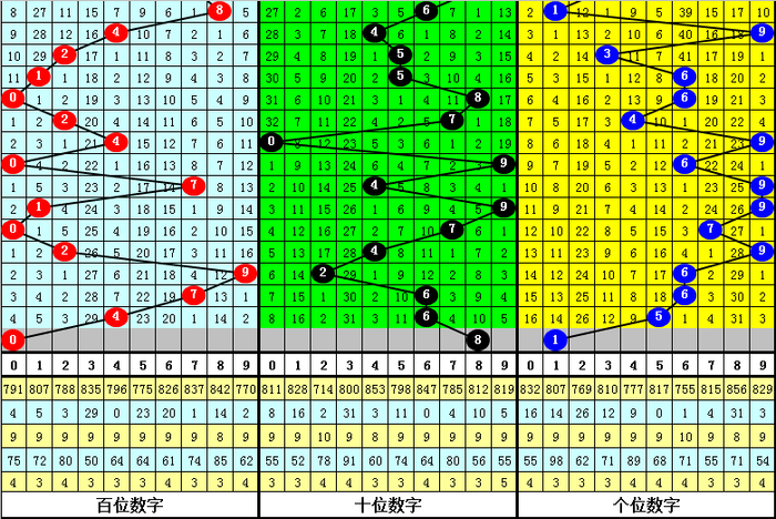 其中,百位号码开出奇偶比为18:27,大小比为23:22,本期注意百位出现偶数号码,一码看好0。