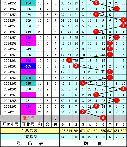 结合其它参数来看,福彩3D第2024271两码关注56、05重点关注56,独胆看好5。