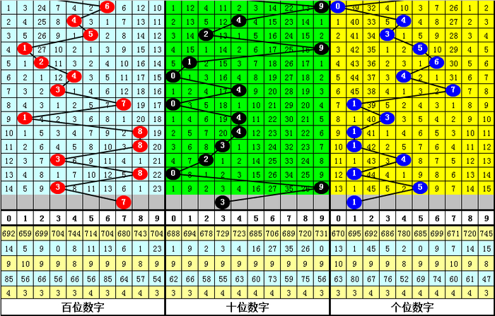 其中,号码0-9开出次数分别为:号码0开出4次、1开出4次、2开出3次、3开出5次、4开出4次、5开出2次、6开出2次、7开出2次、8开出2次、9开出2次。