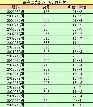 上期回顾:福彩3D第2024271期奖号:795。