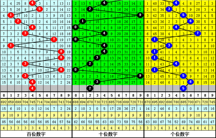 其中,百位奇偶比为6:6,大小比为6:6,本期百位一码参考4。