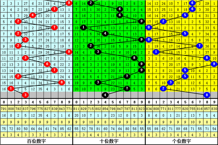 组选分析:在0-9的组选分布图中,最近10期0-2区段开出8个号码,3-6区段开出10个号码,7-9区段开出12个号码,上期3-6区段轮空,本期看好中后部号码热出,防0-2区段走冷轮空。