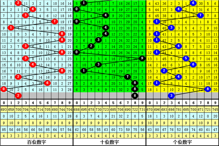 (2)在排列三第2024276期奖号中,最冷的7码组六遗漏18期,在这18期奖号中,组六号码开出15期,出现概率为83%,半顺组合开出9期,含1期全顺组合,开出概率为50%;杂六组合开出6期,开出概率为33%。