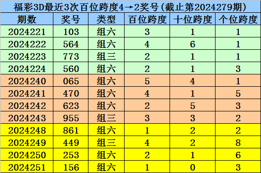 第2024248-第2024250期奖号:861、449、253,其下期奖号为:156,首位号码跨度为1;